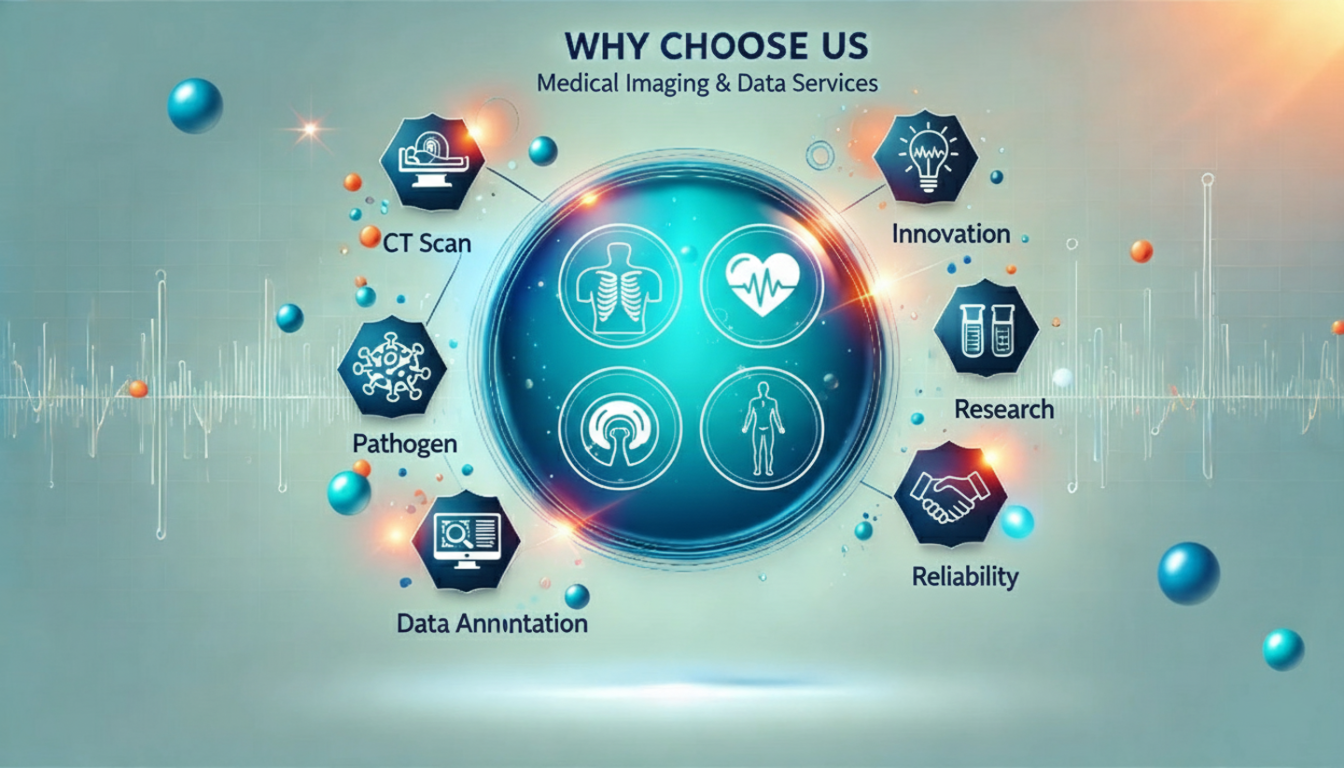 We specialize in healthcare datasets including radiology (CT, X-ray, MRI, Ultrasound, Echocardiography), pathology microscopy, and histopathology images — all ethically sourced and research-ready.